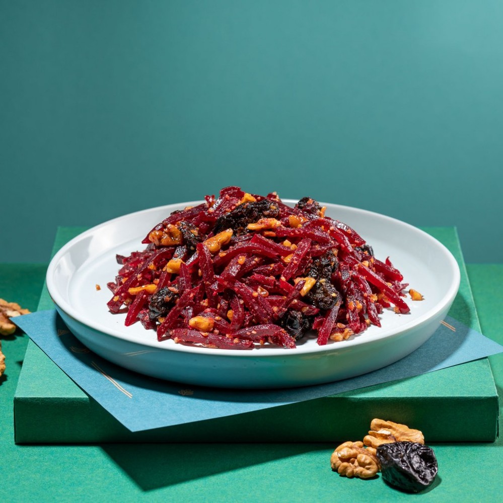 *Салат із запеченого буряка з чорносливом та горіхами 50г