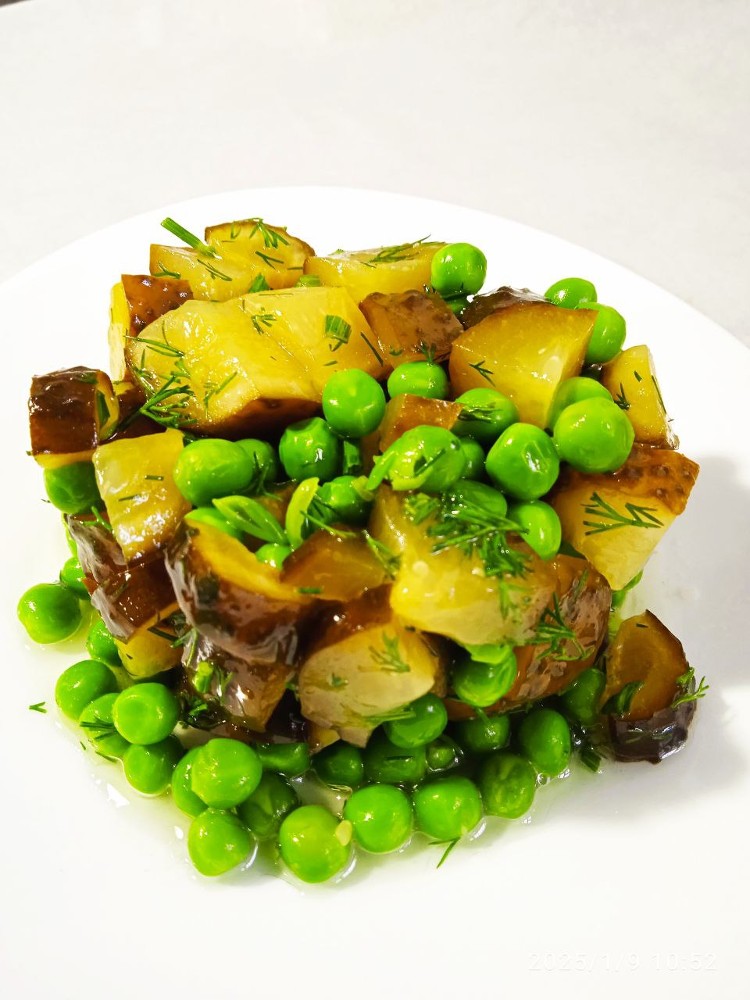 Салат із солоного огірка і зеленого горошку 50г