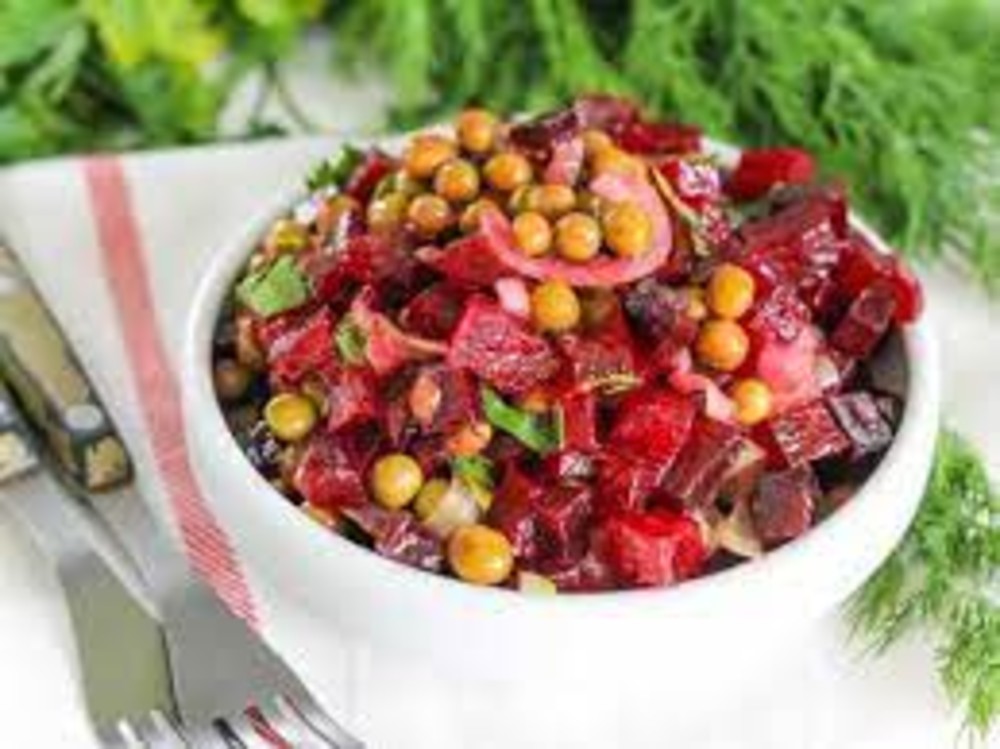 Салат із запеченого буряка, яблук та горошку 50г