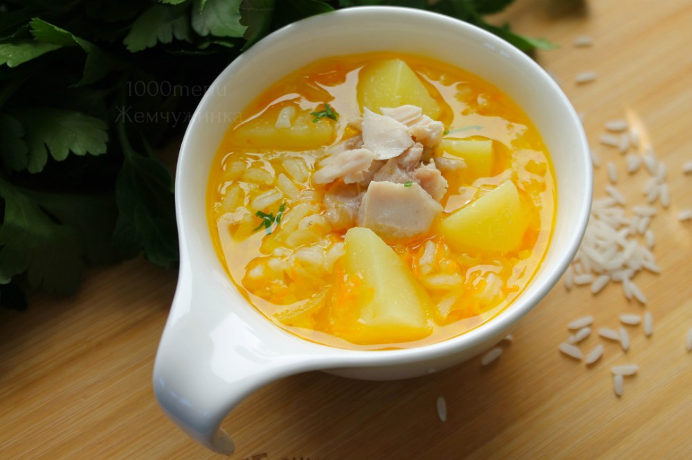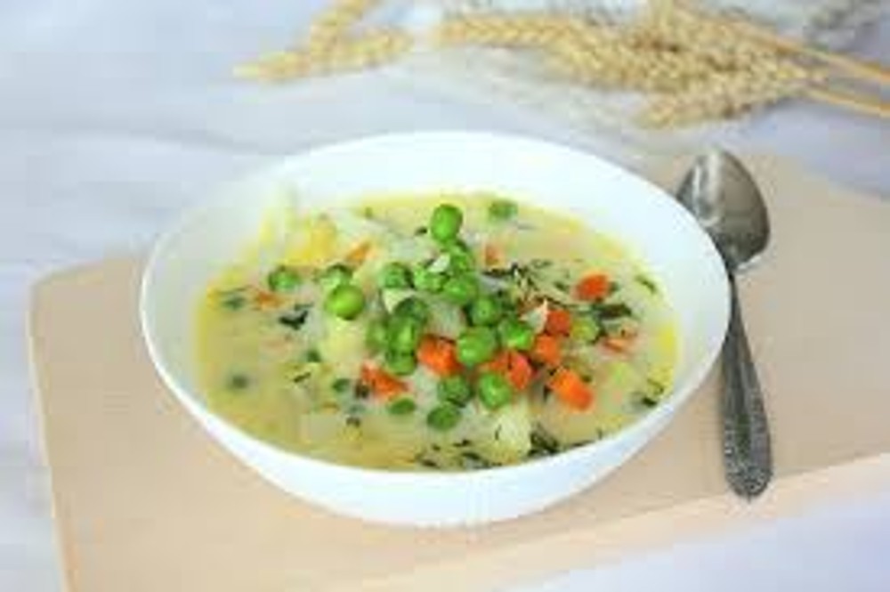 Суп вершковий з макаронами, зеленим горошком та м'ясом 230/20г